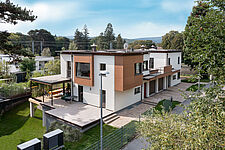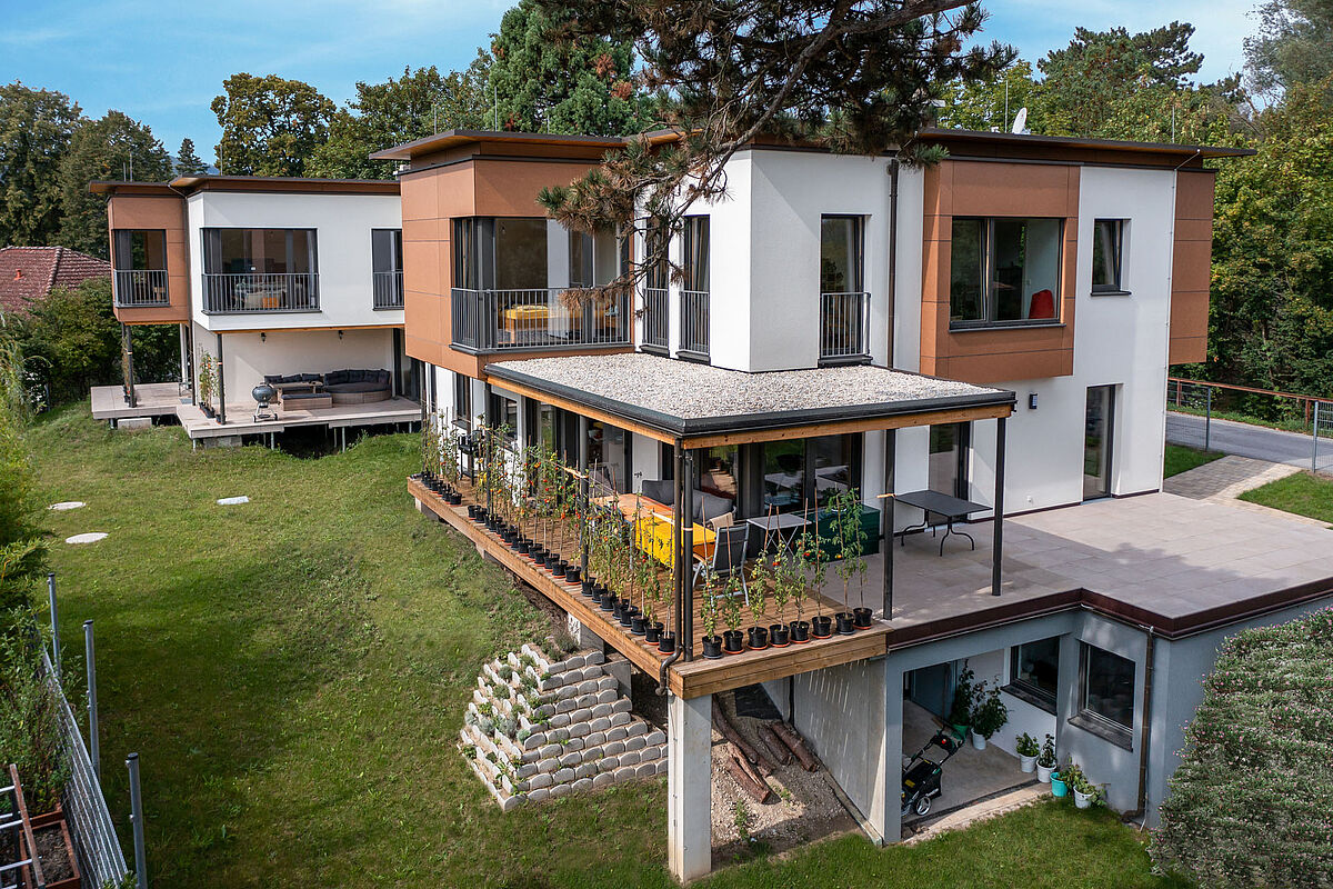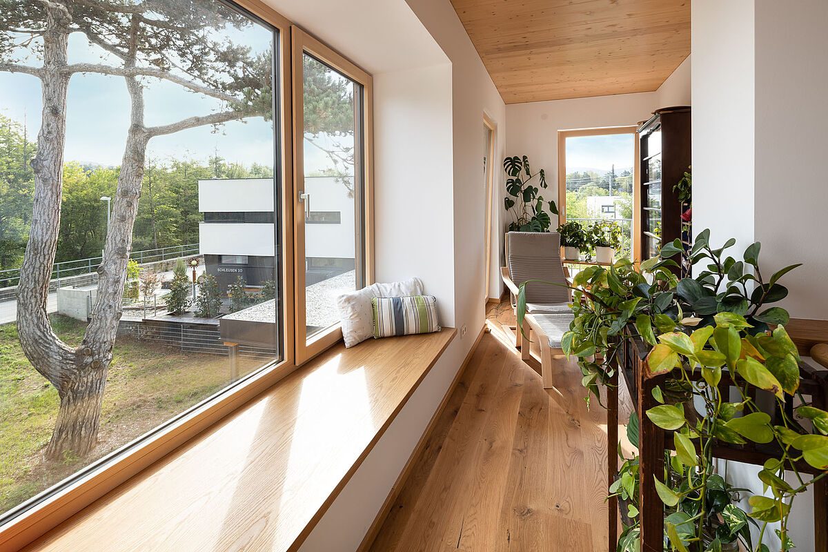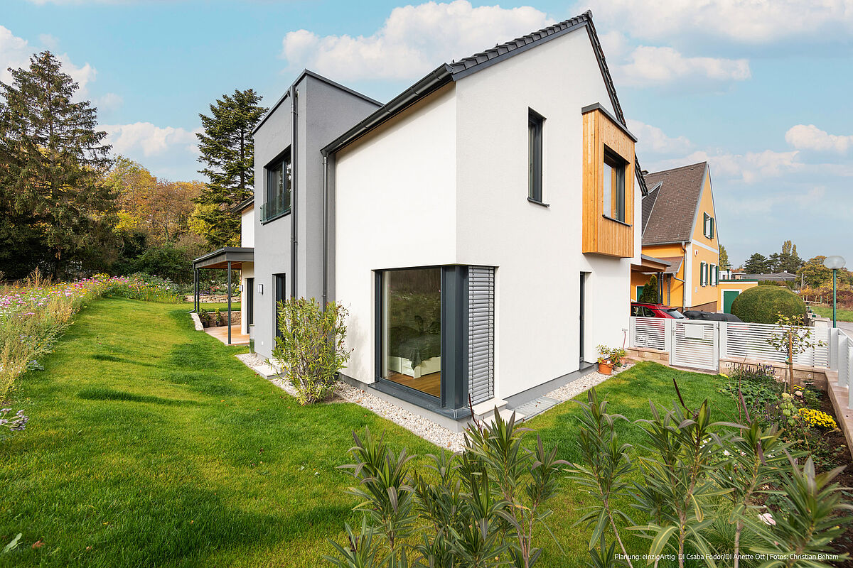 Es gibt viele Gründe, die für ein Holzhaus in Holzriegelbauweise sprechen: Das Baumaterial wächst nach, dazu kommt die regionale Verfügbarkeit - das hält die Anfahrtswege kurz. Generell hat Bauen mit Holz eine äußerst positive Ökobilanz: Ein Kubikmeter verbautes Holz bindet ca. eine Tonne CO2 – und das lebenslänglich. Holz hat auch die Nase vorn, wenn es um die Isolationswerte geht: Weil das Material die Wärme schlecht leitet, ist es in einem Holzbau im Winter bei niedrigen Energiekosten gemütlich warm und im Sommer angenehm kühl. Somit ist Holz der Baustoff der Wahl für energiesparendes Bauen. Auch hier nimmt Genböck eine Vorreiterrolle ein: „Ab Jänner 2021 müssen neue Gebäude mindestens Niedrigstenergiestandard haben. Wir bauen schon lange nach diesem Prinzip“, sagt Geschäftsführer Helmut Möseneder. Genböck produziert bereits seit dem Jahr 2000 Niedrigstenergiehäuser und Passivhäuser, aktuell ist man beim Plusenergiehaus angelangt, d.h. das Wohnhaus erzeugt mehr Energie als es zum Betrieb verbraucht. Wer auf Holz baut, tut sich selbst und der Umwelt etwas Gutes. Und den kommenden Generationen, die sich viele Jahre in einem Fertigteilhaus von Genböck Haus wohlfühlen können. Langlebig und wertbeständig sind Holzhäuser nämlich auch. Photovoltaik, Wärmepumpe und Komfortlüftung sind weitere Bonuspunkte auf dem Weg zum klimafreundlichen Wohnen und werden bei Genböck Haus schon lange angeboten.
