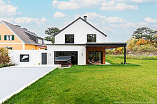 Gefertigt werden alle Häuser von Genböck Haus in ökologischer Holzriegelbauweise auf modernsten Anlagen in Haag am Hausruck. Die Ausbaustufe kann man sich je nach eigenem Geschick und Können quasi selbst aussuchen. Vom Ausbauhaus bis zum schlüsselfertigen Eigenheim ist bei Genböck Haus alles möglich. Unter einem schlüsselfertigen Haus vrestehen wir ein Fertighaus, das vollständig fertiggestellt und bezugsbereit ist. Das bedeutet, dass alle Arbeiten, einschließlich der Elektrik, Sanitär, Bodenbeläge und Malerarbeiten, abgeschlossen sind. Der Käufer muss nur noch den Schlüssel umdrehen und kann sofort einziehen.